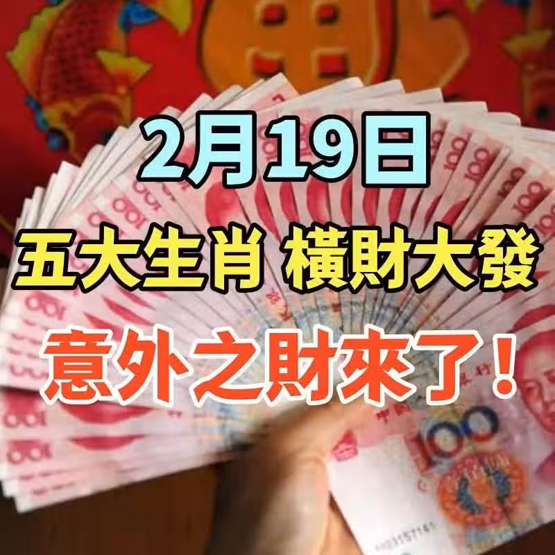 💰🔥2月19日,五大生肖橫財大發,意外之財來了! 今天是2月19日,財神爺特別關照,五大生肖的朋友屬羊、屬蛇、屬馬、屬牛、屬鼠迎來超強橫財運!今天財星高照、意外之財降臨,無論是中獎、紅包、偏財,都有機會大豐收!鈔票滾滾來,準備迎接財富暴漲的好日子吧!💰🎉