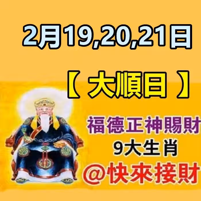 2月19,20,21大順日,福德正神賜財,九大生肖請接財