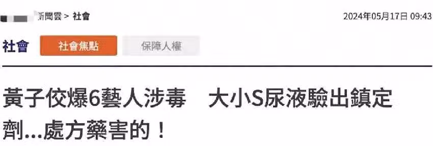 5月17日據台媒報道,台北地檢署偵辦此案,在大小s范曉萱的頭髮、尿液驗出蒂諾斯等鎮定藥物成分。