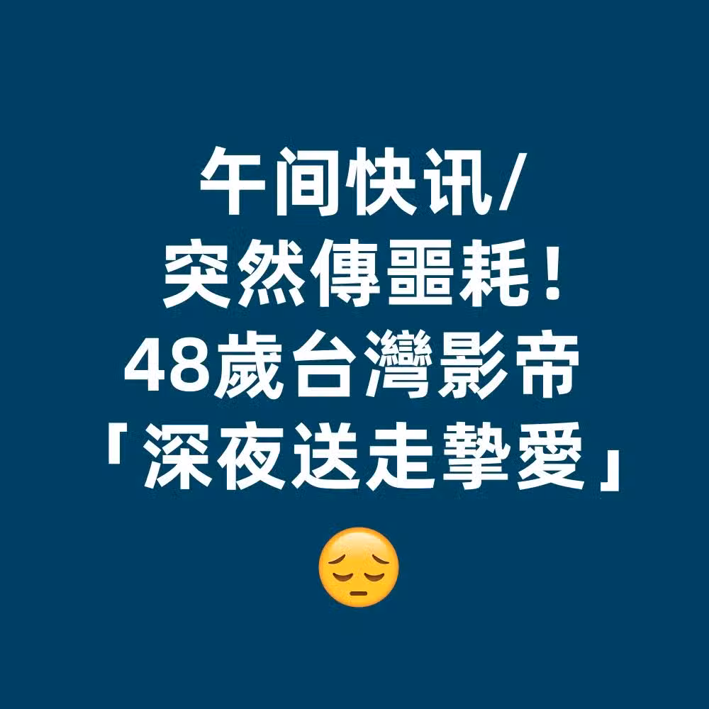 午間快訊/突然傳噩耗!48歲台灣影帝「深夜送走摯愛!」