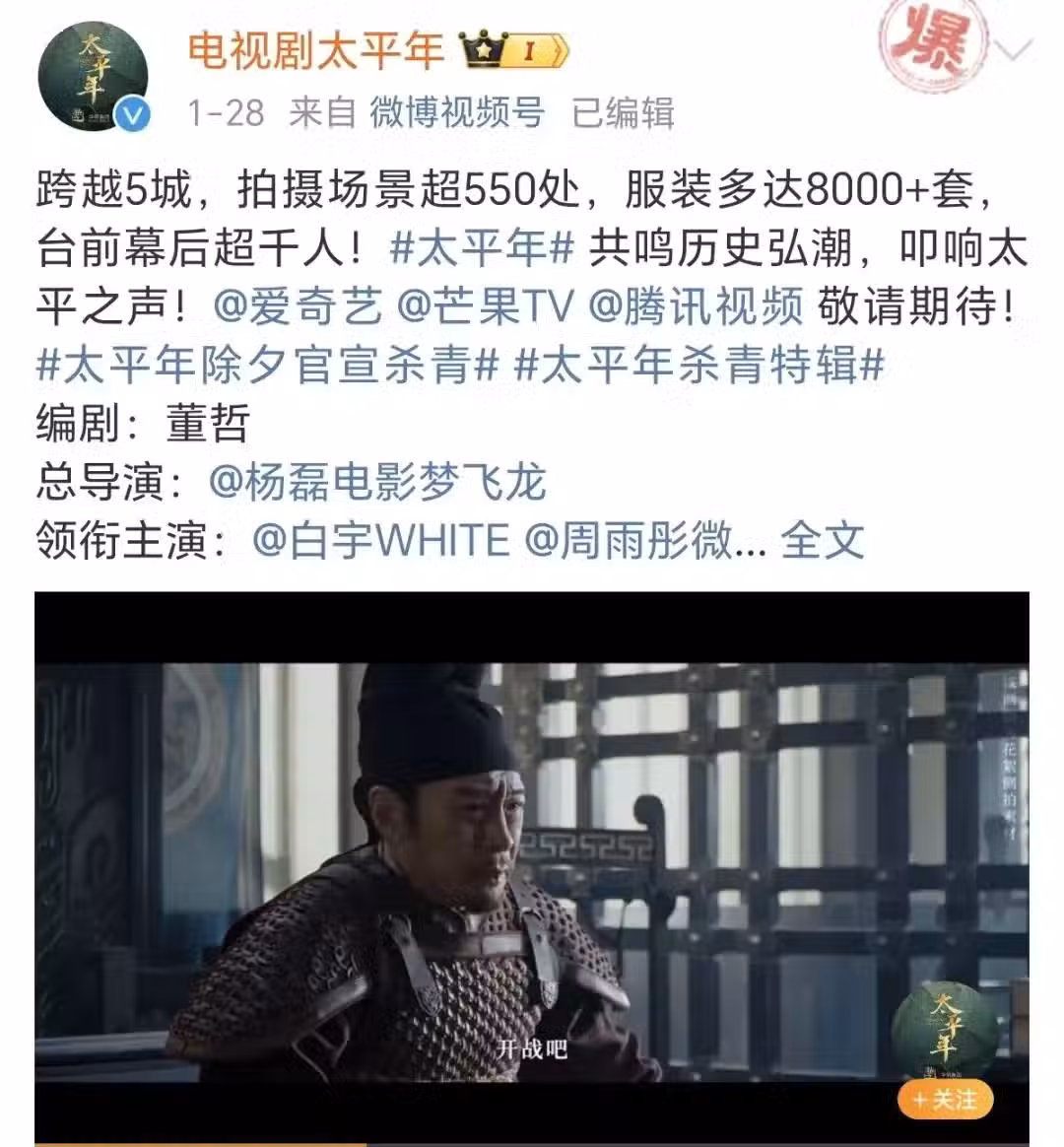 《太平年》是在去年9月28日開機的,在除夕當天已經殺青了,也選入了央視2025年的待播片單中。