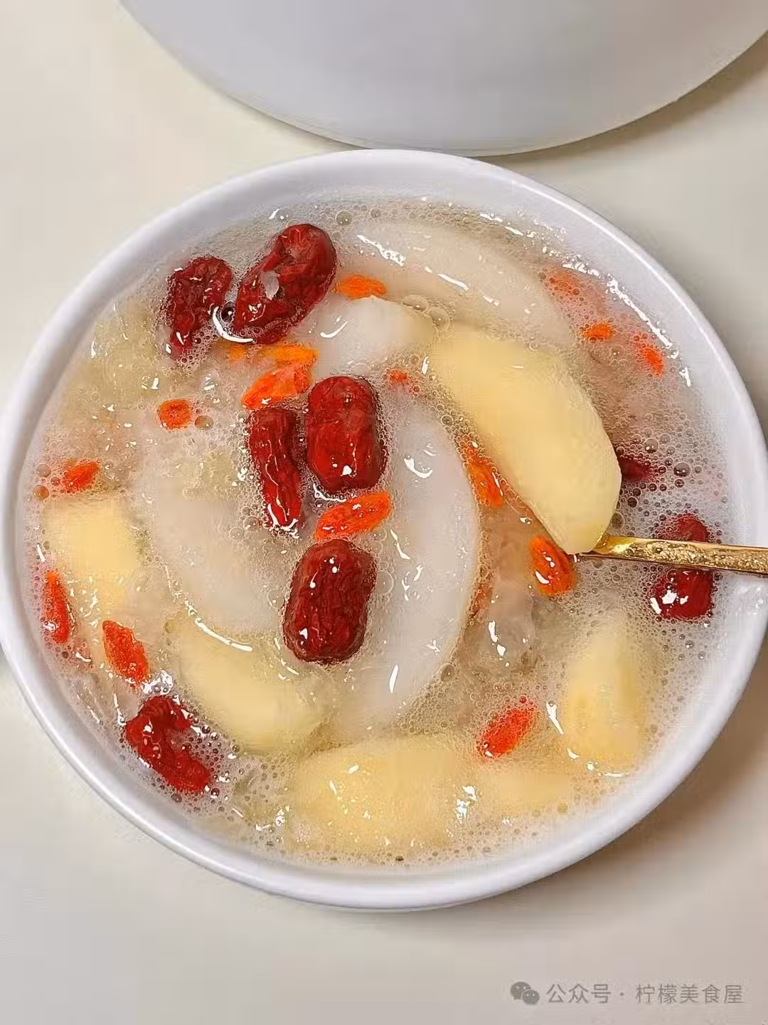 春天多給孩子補津液,就喝這款蘋果雪梨銀耳羹,甜甜的,暖暖的,超好喝。小孩可以喝,大人也可以喝。 連喝兩周,脾胃舒服了,口也不幹了,晚上睡覺得也更踏實了。 食材: 銀耳、紅棗、冰糖、枸杞、雪梨、蘋果 做法: 1、銀耳提前泡好剪碎,蘋果用鹽搓洗乾淨,去皮去核切塊,雪梨去皮去芯洗凈切塊。 2、銀耳放到鍋里,加適量清水煮20分鐘,倒入紅棗、冰糖煮5分鐘。 3、倒入水果塊煮8分鐘,放適量枸杞調味即可。