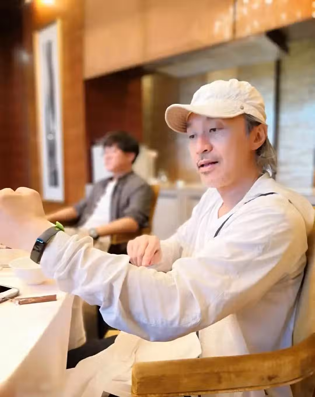 62歲周星馳和朋友聚會,雙鬢花白,身形消瘦,長相幾十年沒啥變化