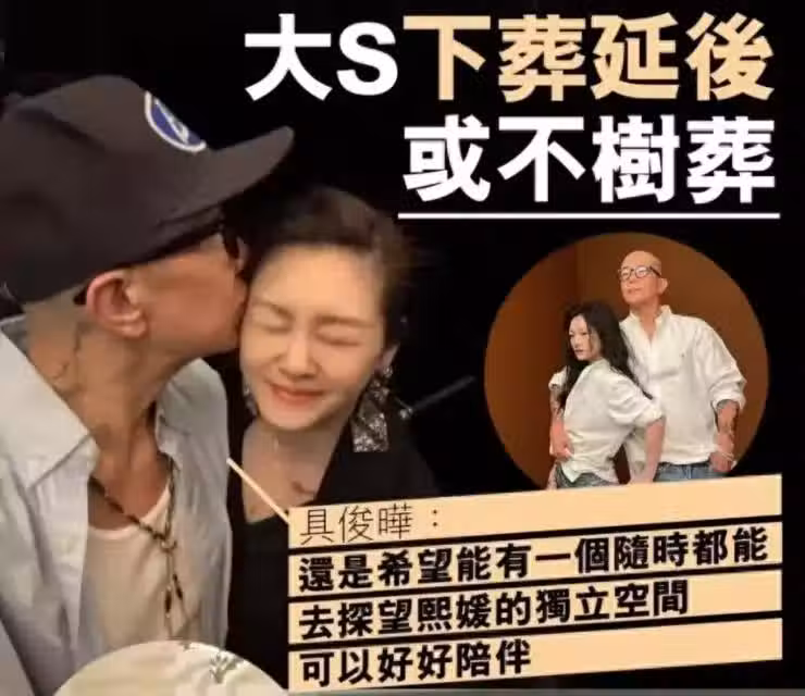 2月2日,大S因流感併發症在日本去世,如今已經過去19天了,大S還沒有安葬,據具俊曄回應說,他想按照韓國儀式給妻子買墓地,有個地方可以祭拜,所以安葬時間還要推遲。