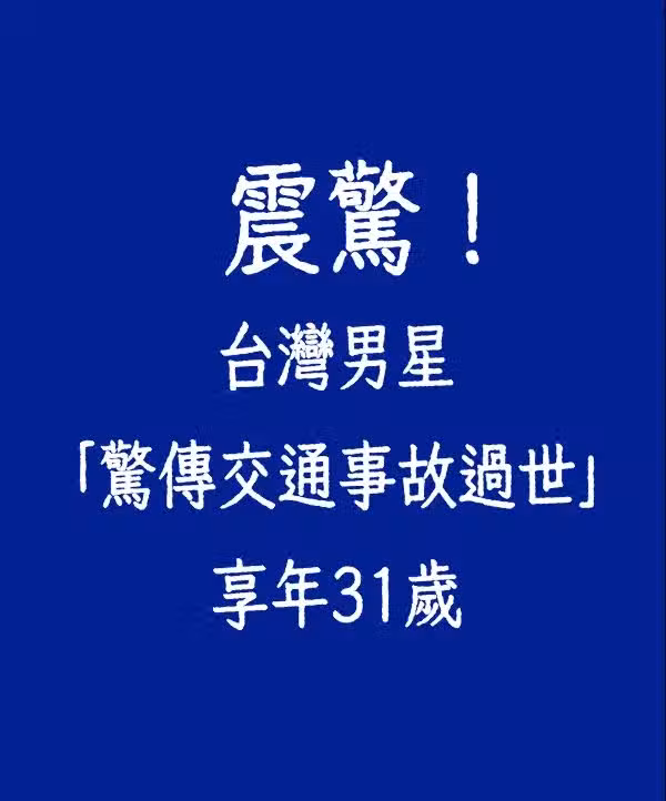 震驚!台灣男星「驚傳交通事故過世」享年31歲 …
