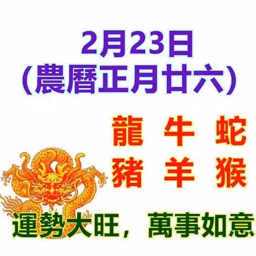 小運播報:2025年2月23日,星期日,農曆正月廿六,法定工作日。