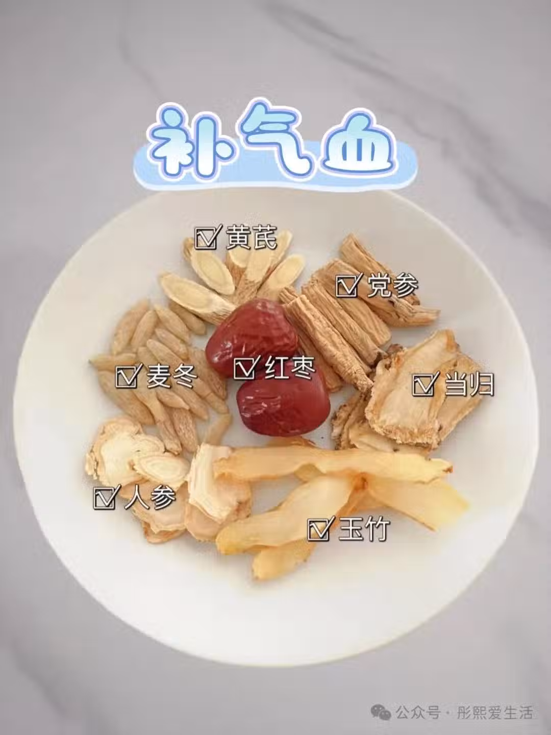 補氣血:麥冬、當歸、人參、黨參、玉竹、黃芪