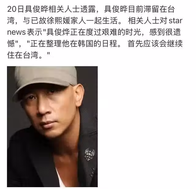 除了做出這個決定,具俊曄昨天還透露將會無限期停工,因為太捨不得大S,情緒還無法恢復,所以不能繼續工作。台媒透露他正在整理韓國的工作安排,或許將定居台北。