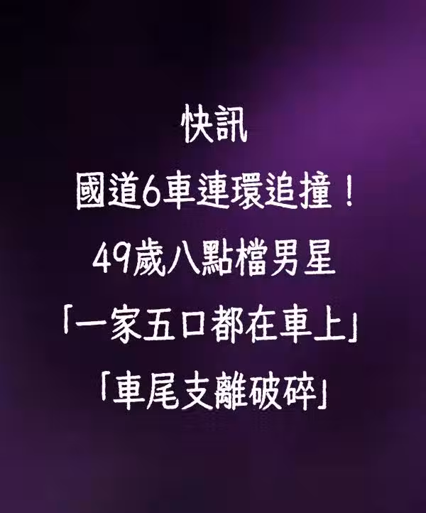 快訊/6車連環追撞!49歲八點檔男星「一家五口都在車上」,「車尾支離破碎」驚險過程曝