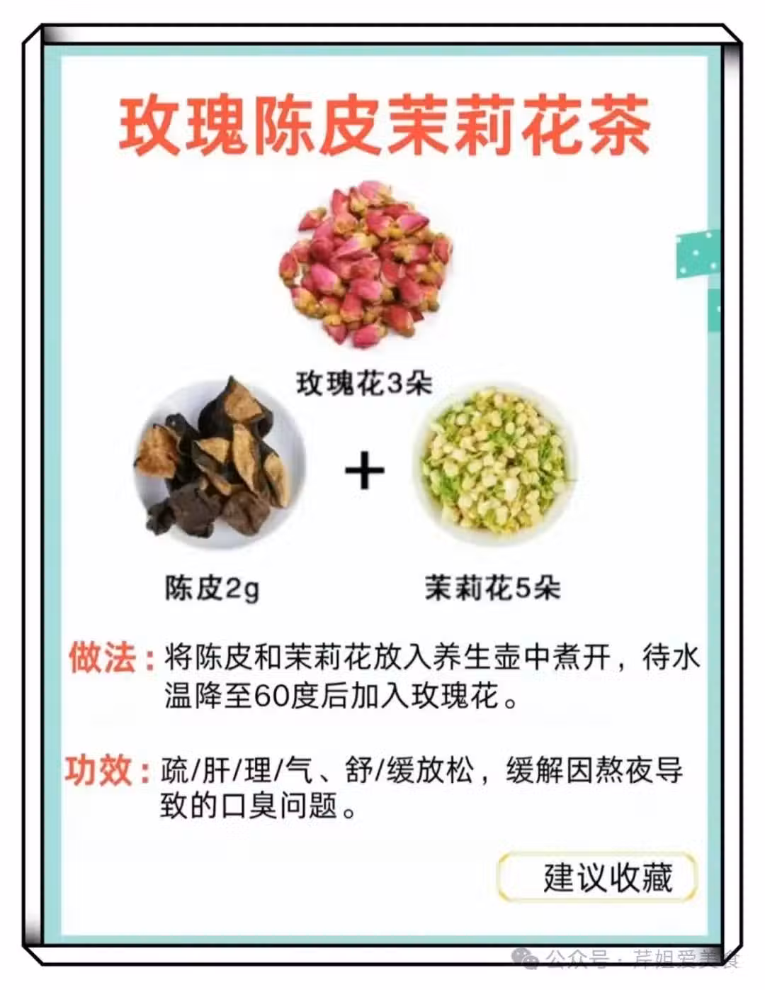 玫瑰陳皮茉莉花茶不僅口感清香,而且具有多種健康益處,適合日常飲用,尤其適合需要疏肝解郁、和胃止痛、美容養顏的人群。