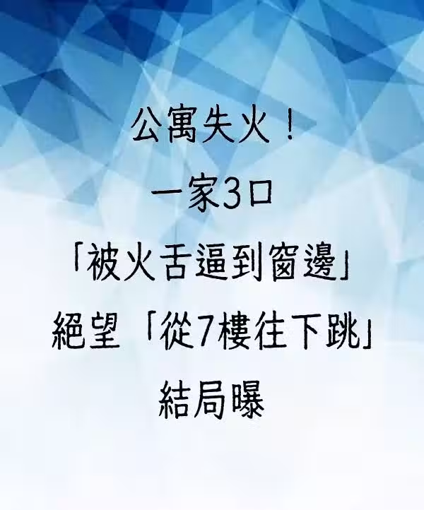 公寓失火!一家3口「被火舌逼到窗邊」 絕望從7樓往下跳……