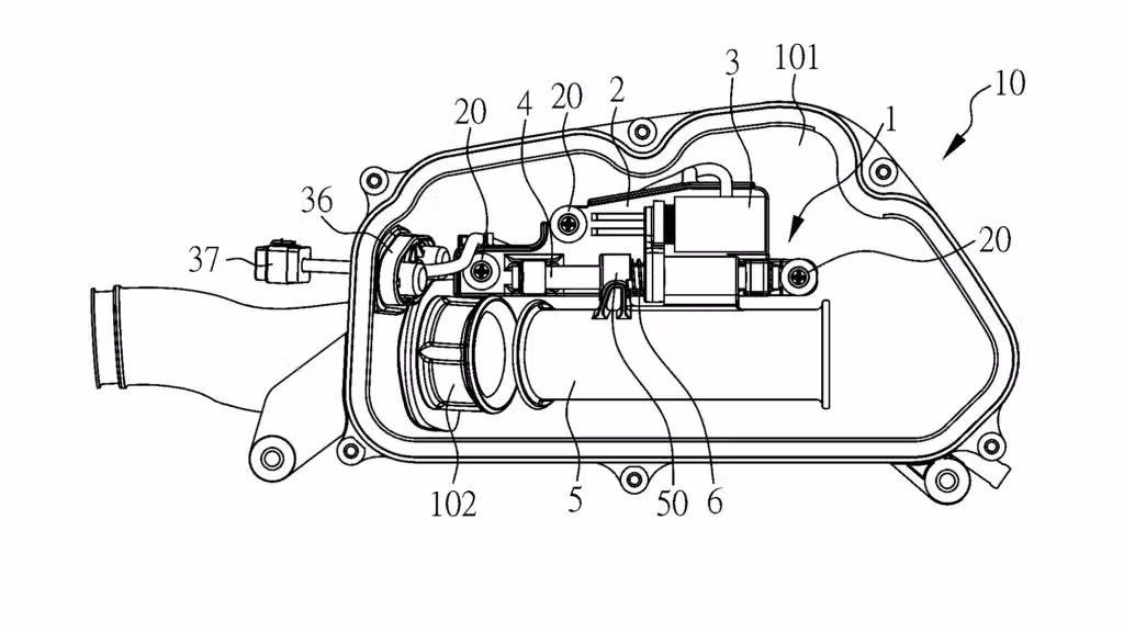 另外可變岐管角度調整、電磁閥控制馬達、進氣溫度感知器也都在這組專利設計提及的內容。(圖片來源/ 專利公報)