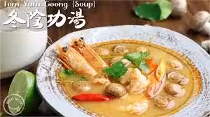 冬陰功湯是泰國最具代表性的酸辣湯,以香茅、檸檬葉和辣椒為特色,口感酸辣開胃。