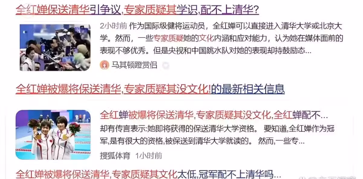 劉翔2005年保送華東師大時,網友還在用諾基亞敲鍵盤;張怡寧進北體大那年,微博還沒誕生。怎麼輪到全紅嬋,輿論就炸了?