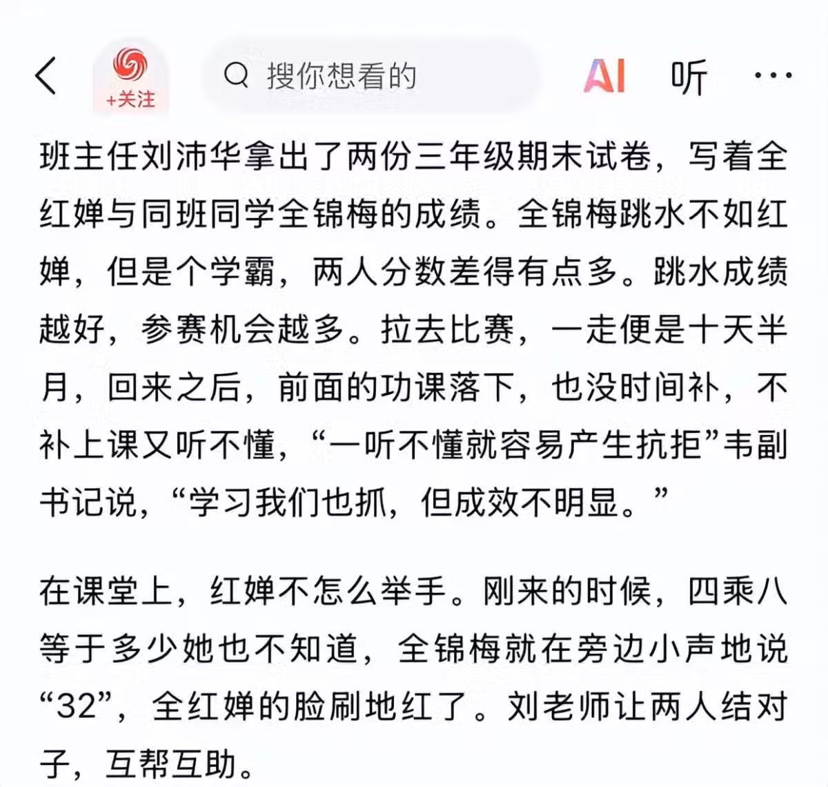 這個小女孩在水中找到了自己的舞台,卻在課堂上顯得有些力不從心。就像一顆璀璨的流星,在夜空中划過一道耀眼的光芒,但在地面的我們看來,它依然只是遙遠的光點。全紅嬋在跳水池中的表現令人驚嘆,卻無法掩蓋她在學習上的挑戰。