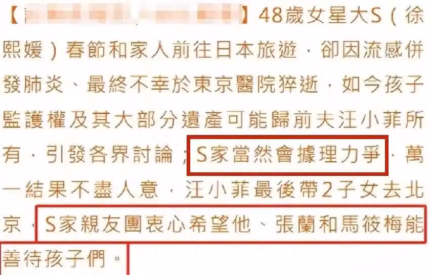 畢竟大S的家屬希望2個孩子在台灣生活。