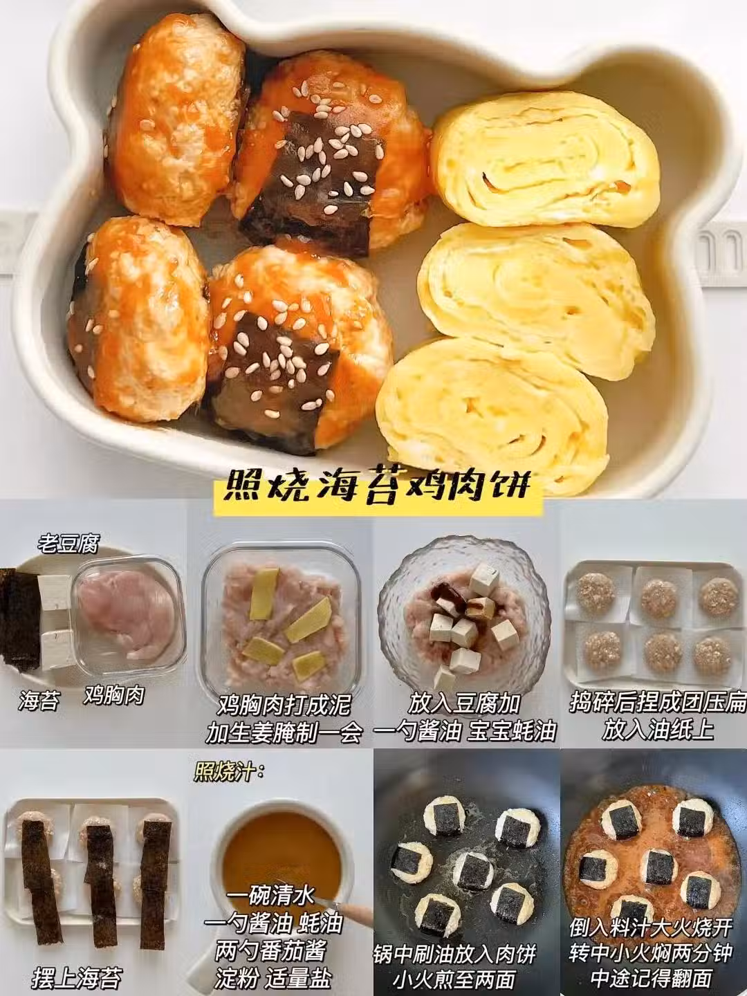 打工人的回血神器,雞胸肉打成泥,刷上照燒醬,卷上海苔煎到焦香。
