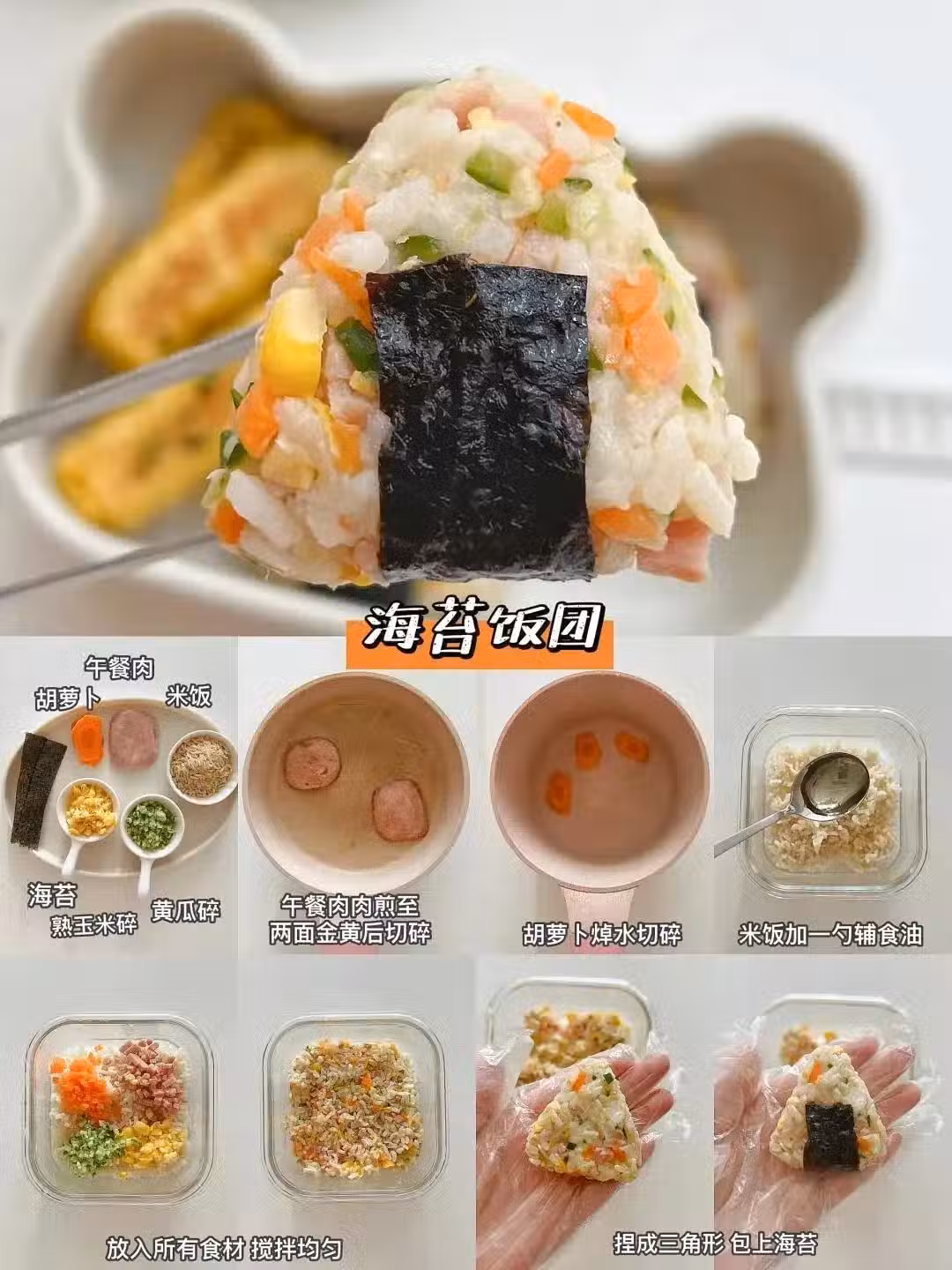 懶人界的扛把子,剩米飯拌點芝麻、鹽,捏成三角形包上海苔。