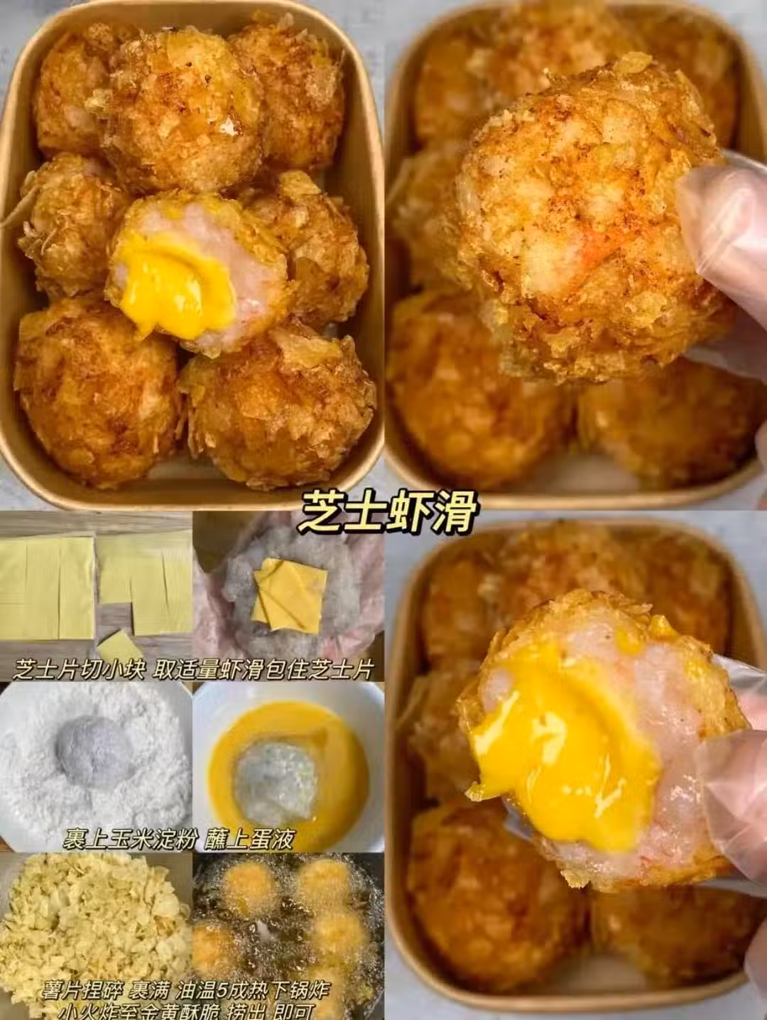 火鍋店隱藏吃法!蝦滑搓球塞馬蘇里拉芝士,油溫五成熱下鍋炸,小火炸至金黃酥脆,咬開直接拉絲暴擊,外酥里嫩到蝦肉會跳舞!
