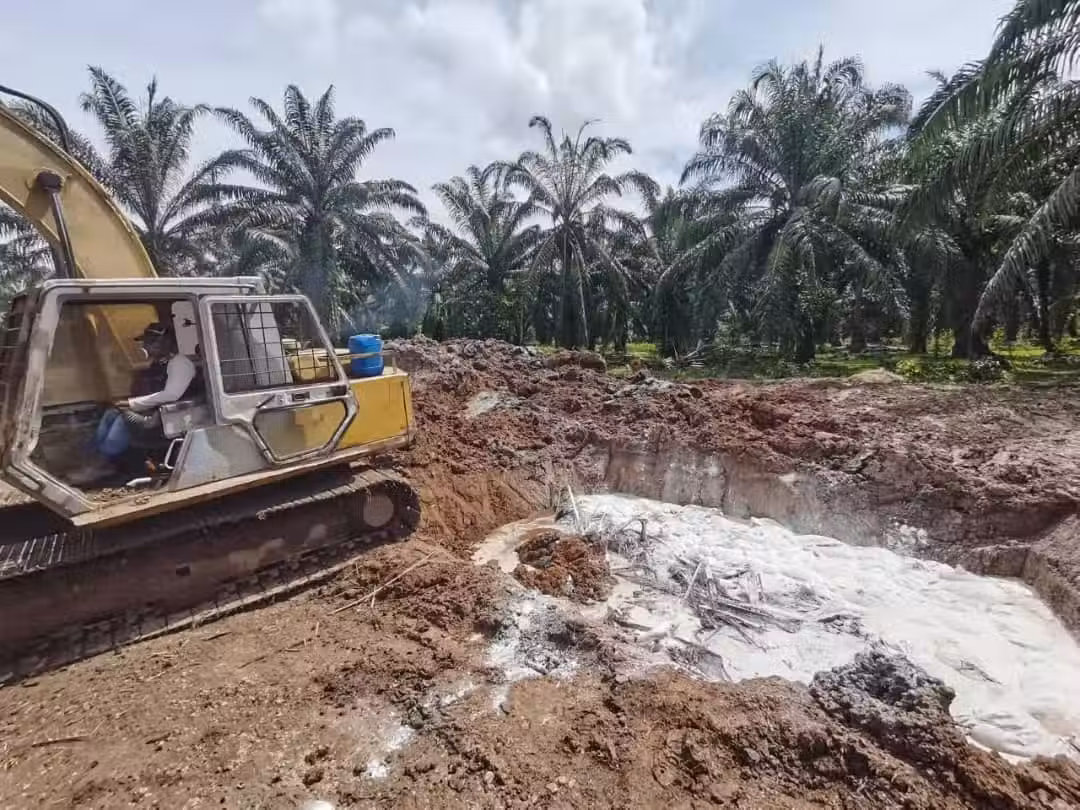 當局挖好了坑,準備將豬只埋掉。(獸醫局提供)