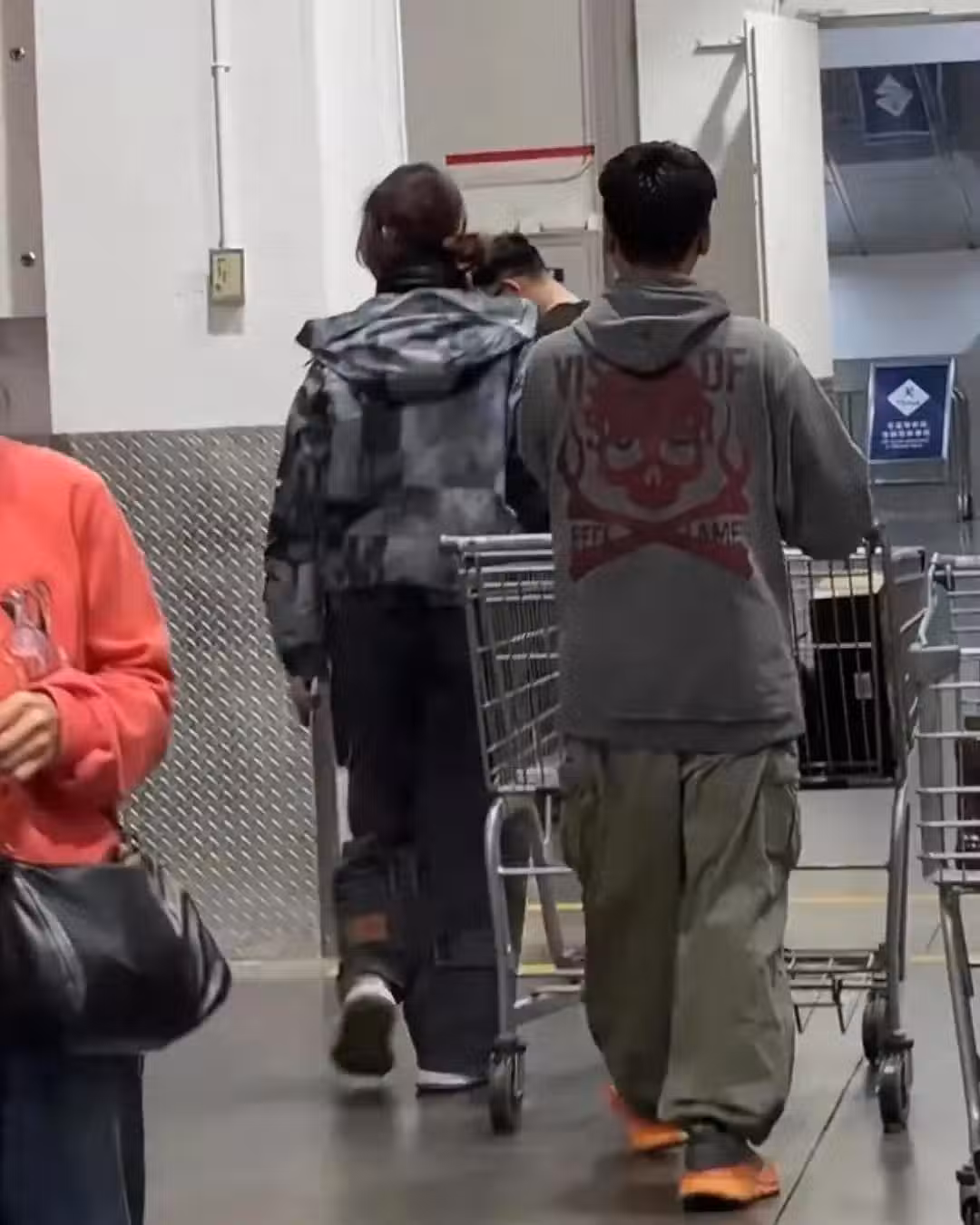 當天蔡少芬夫婦倆打扮得很低調,戴著口罩,兩人一起推著一個購物車進了超市。