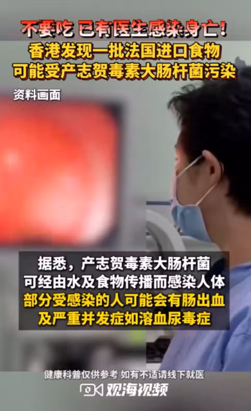 2月23日,食物安全中心發言人表示,該中心接獲歐洲聯盟委員會食品和飼料快速預警系統的通報,指上述產品可能受產志賀毒素大腸桿菌污染,正在法國及其他國家進行回收。該中心得悉事件後,隨即聯絡進口商跟進,初步調查發現有香港進口商曾進口屬受影響批次的八塊共重約13.7公斤的產品,並分配至一香港零售商出售。