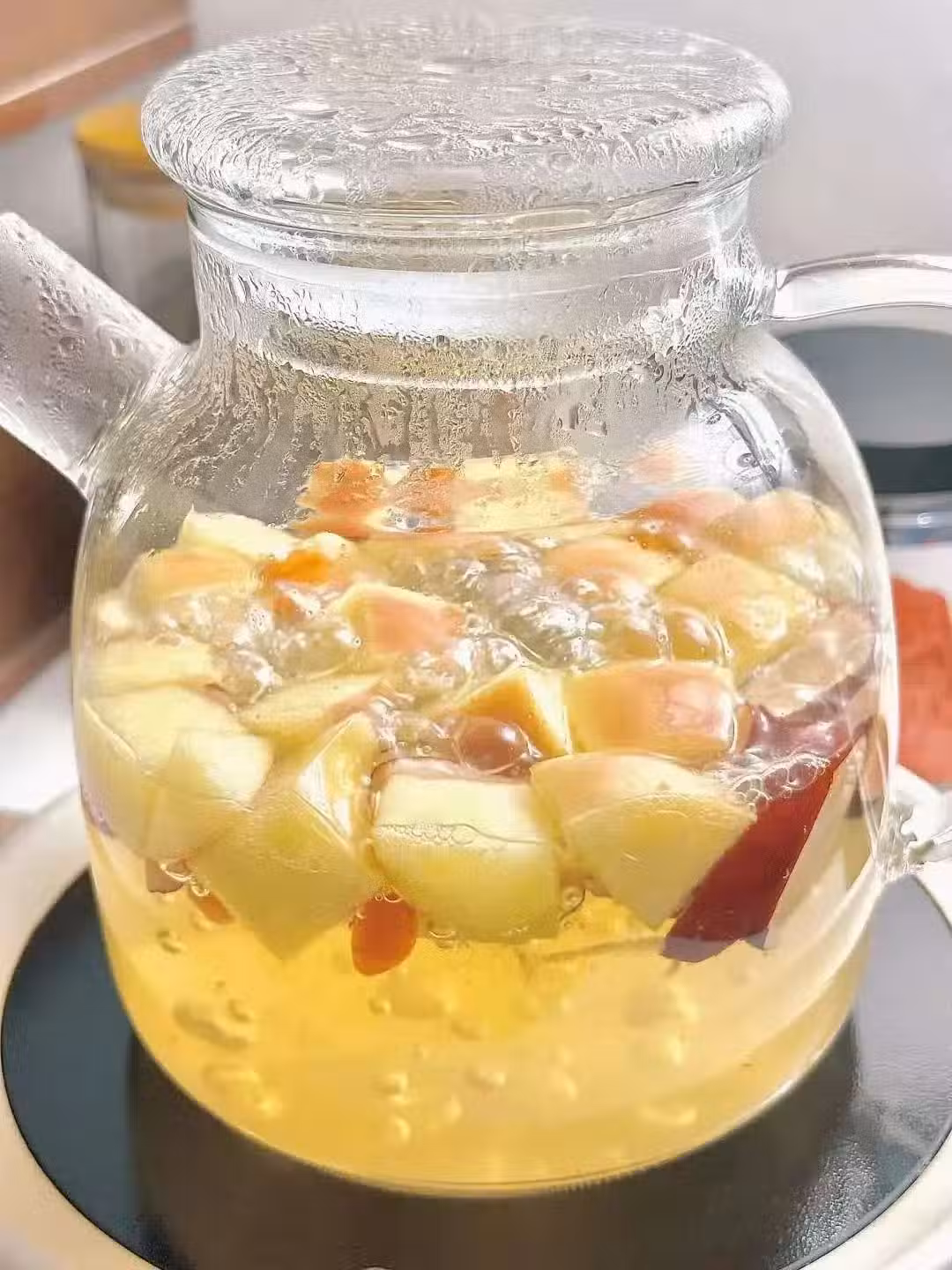 這款蘋果水,絕對是春季的養生必備!山藥和芡實對脾胃非常好,茯苓有助於利水排毒,而蓮子則有補氣養血的作用,搭配蘋果一起煮,脾胃更舒適。