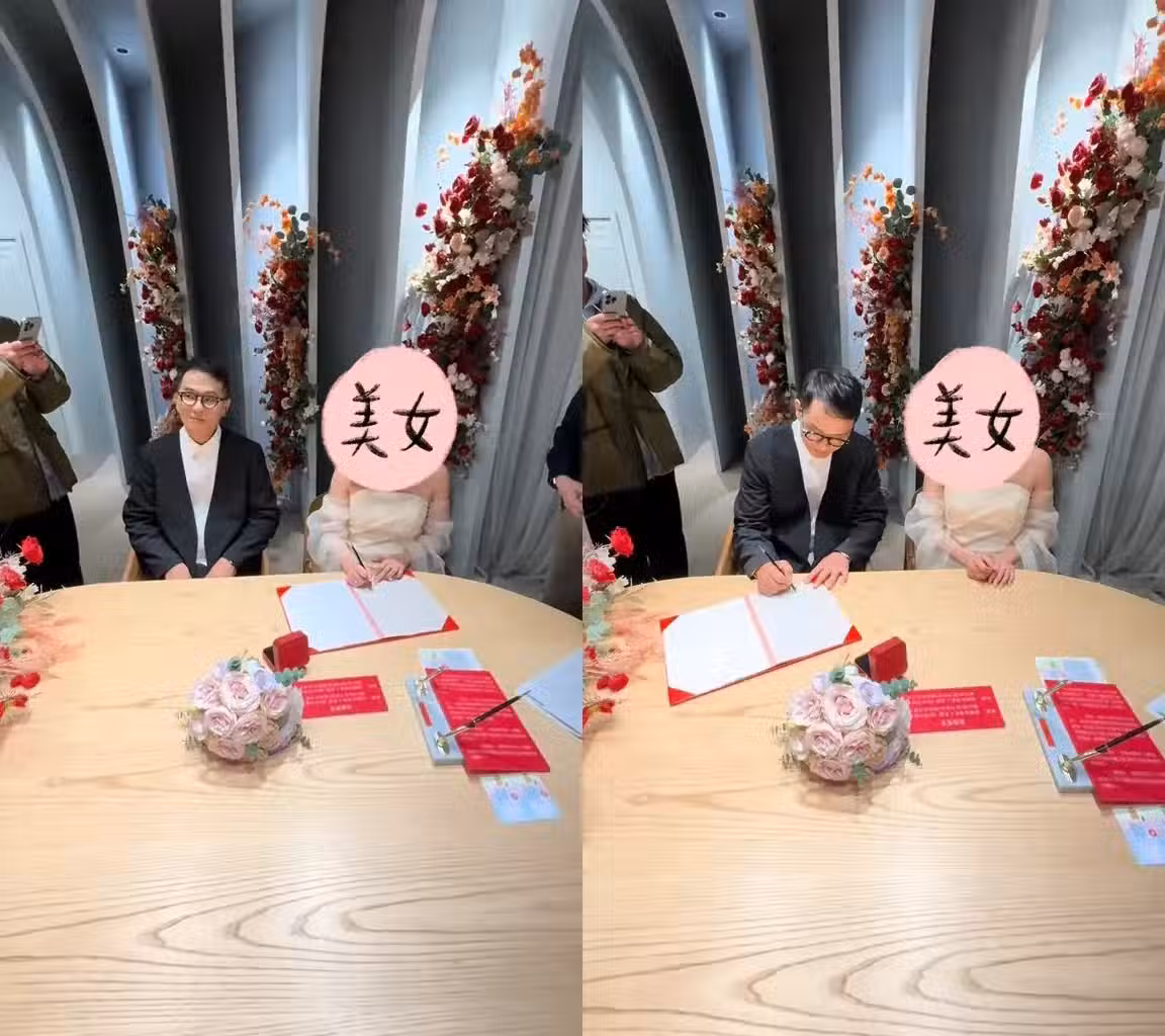 儘管臉部打了馬賽克,但網友都發現邵卓堯的妻子,也是刻意打扮了一番,皮膚白皙、緊緻,身材均勻,甚至還穿著白色婚紗進行註冊,可見對於儀式的重視程度。