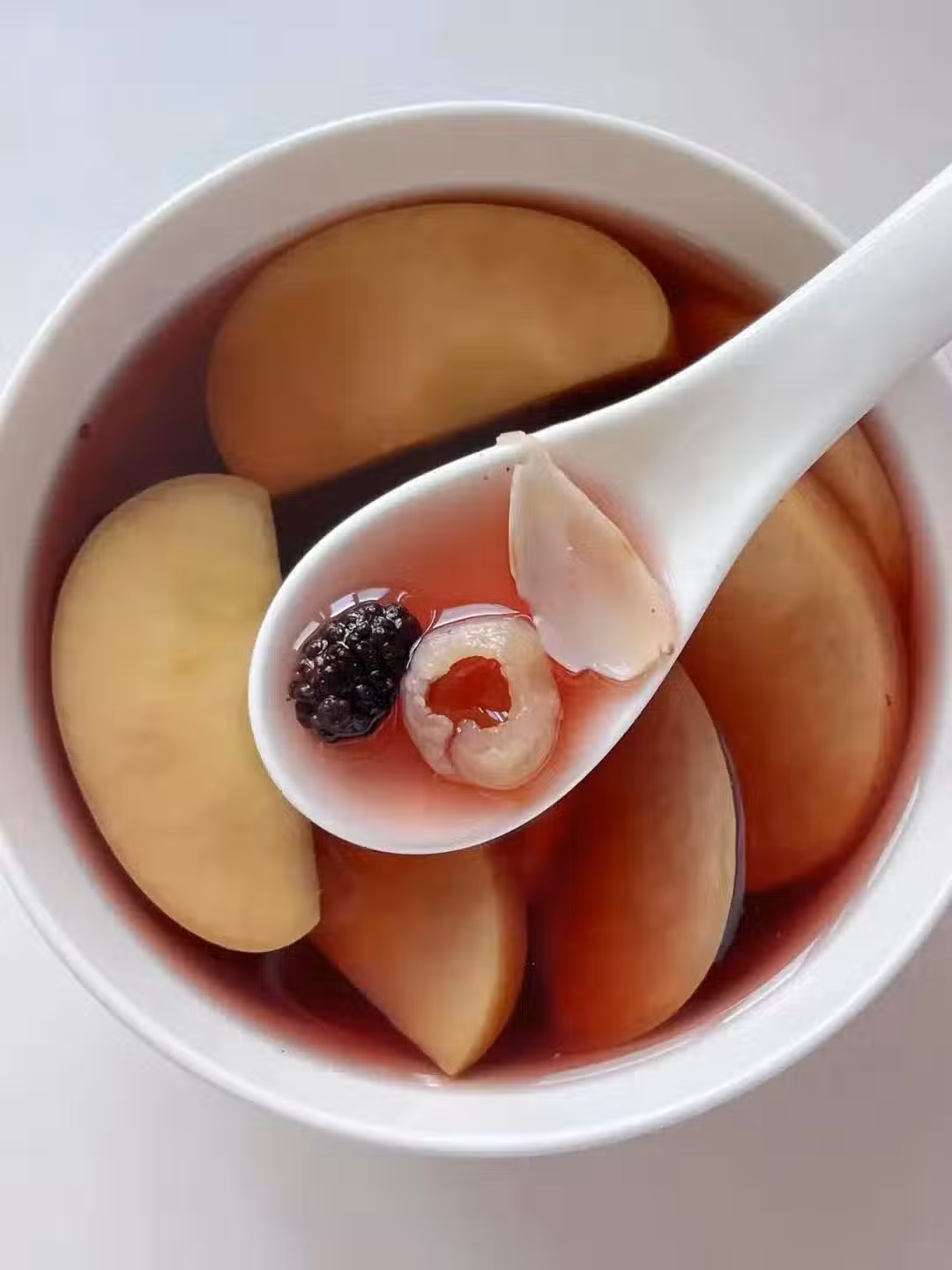 煮出來的水果香四溢,不加糖也特別好喝,吃果肉喝湯,美味又健康! 功效: 蘋果促消化,桑葚滋陰補血,潤燥通便;桂圓,安心寧神,補血養氣。堅持喝不僅能改善睡眠,還能補血養顏,睡眠好了,精神足了,身體自然就好!