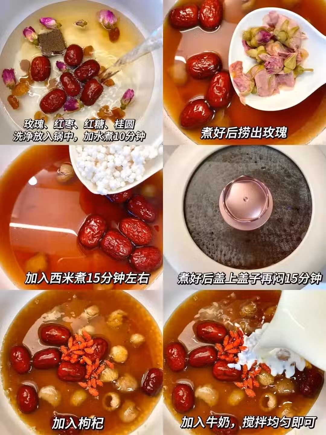 【食材】紅棗、牛奶、玫瑰、枸杞、紅糖