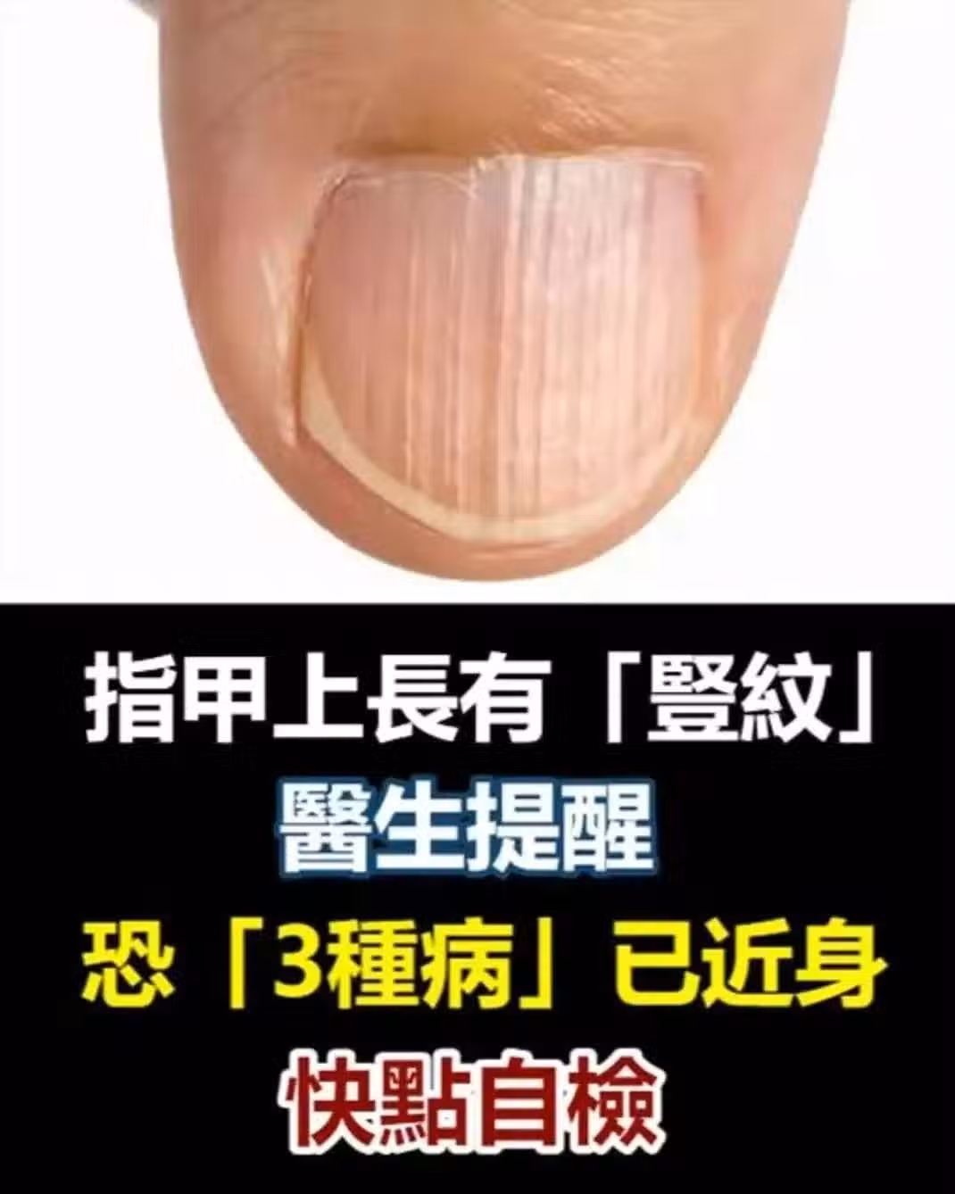 指甲上長有「豎紋」醫生提醒:可能是「這3種病」已近身,自檢