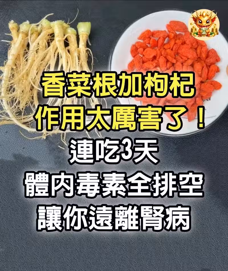 香菜根加枸杞,作用太厲害了,連吃3天,體內毒素全排空,讓你遠離腎病, 夜裡不失眠了,腰腿也不疼了!