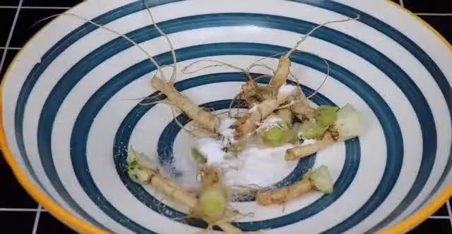 將咱們準備好的香菜取出來先清洗乾淨,根部要著重清洗一下,清洗完成之後咱們將香菜的根部全部剪下來,咱們只要白色的部位,剪好之後將其放到一個碗中,加上適量的食用鹽和小蘇打,再加上適量的清水,將其用手搓洗一下,食用鹽能夠殺菌消毒,小蘇打有很強的去污能力。
