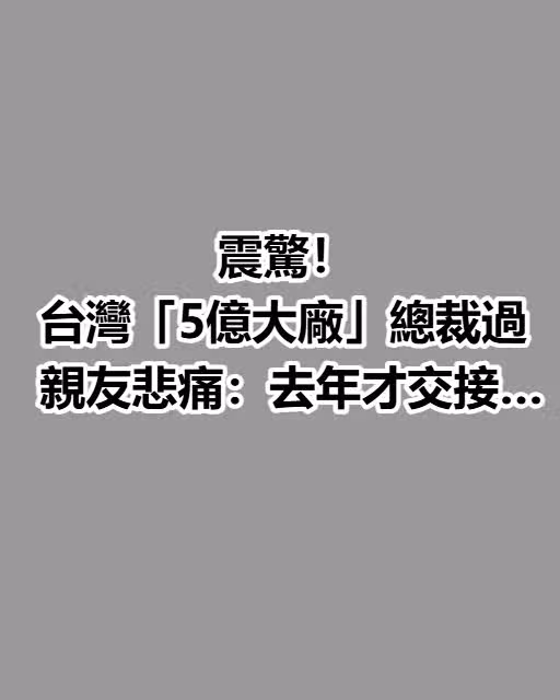 震驚!台灣「5億大廠」總裁過世 親友悲痛:去年才交接…