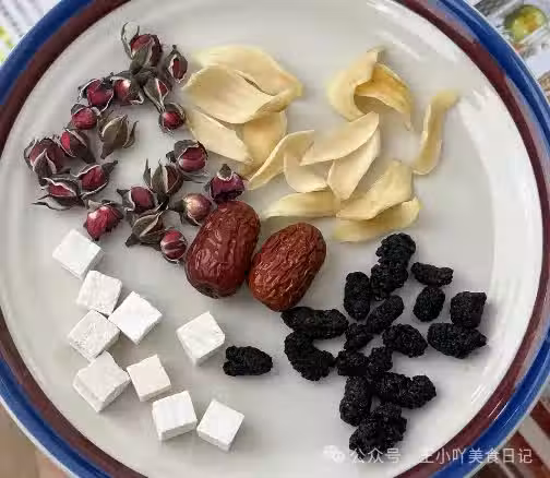準備材料:將桑葚、茯苓、紅棗(去核)、百合洗凈備用。紅棗去核可以減少其燥熱性,更適合春季飲用。