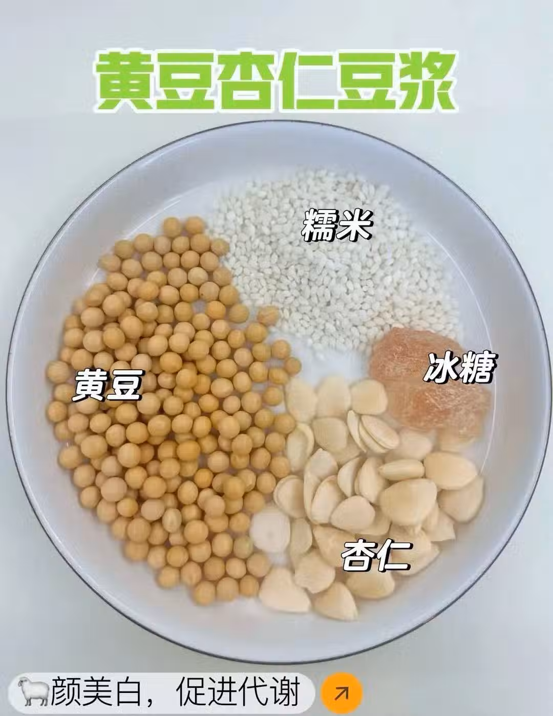食材準備:黃豆➕糯米➕杏仁➕冰糖