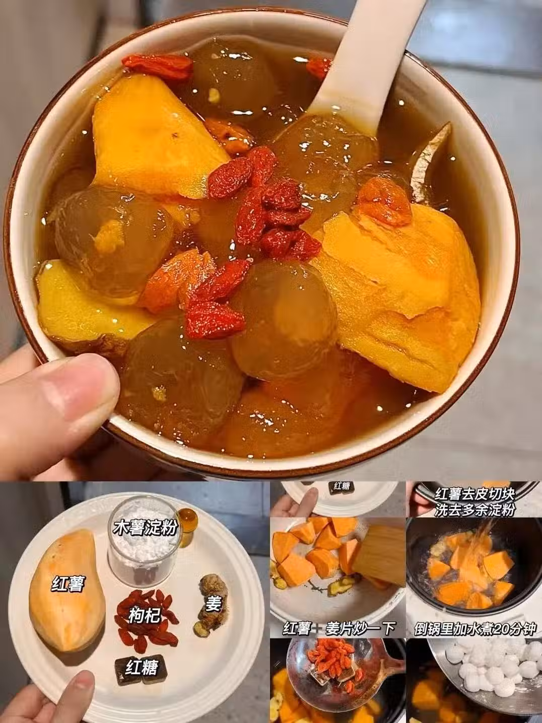 食材準備:紅薯➕枸杞➕紅糖➕木薯澱粉➕姜
