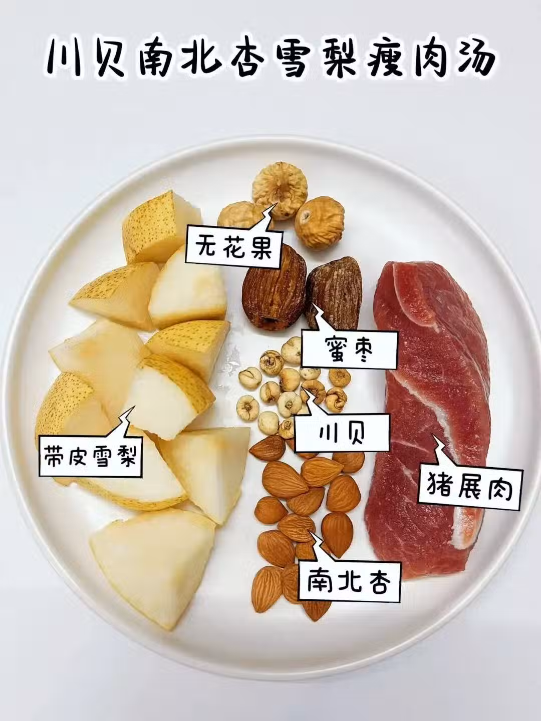 食材準備: 雪梨➕瘦肉➕南杏北杏➕川貝➕無花果➕蜜棗