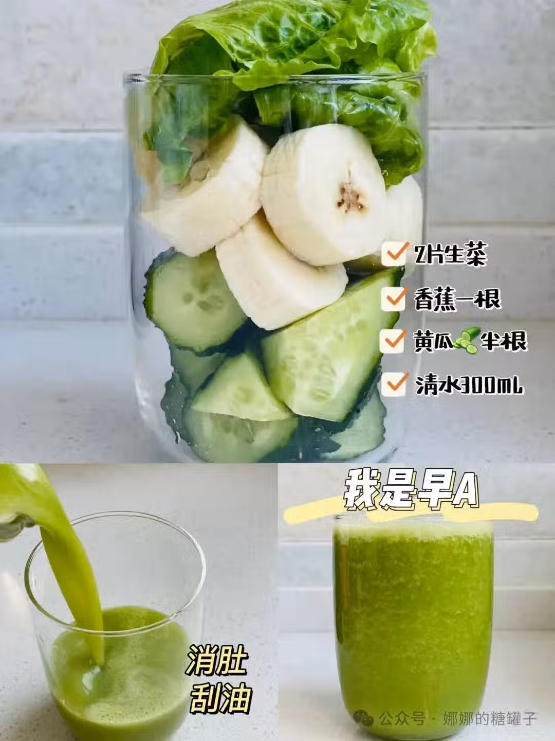 1️⃣2片生菜➕香蕉一根➕黃瓜半根➕300mL清水