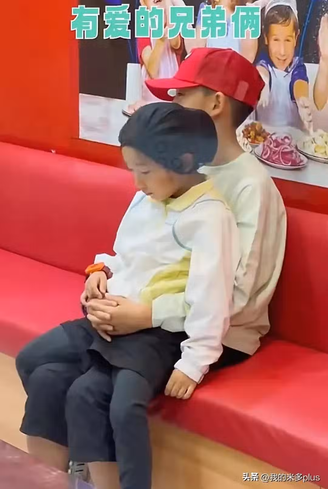甚至是在有沙發空座的情況下,Jasper也願意讓弟弟坐在自己腿上休息,他還用胳膊攬著HOHO,畫面太溫暖了。應采兒視角的兩個孩子相親相愛,哥哥非常有責任感,都能當半個家長了。