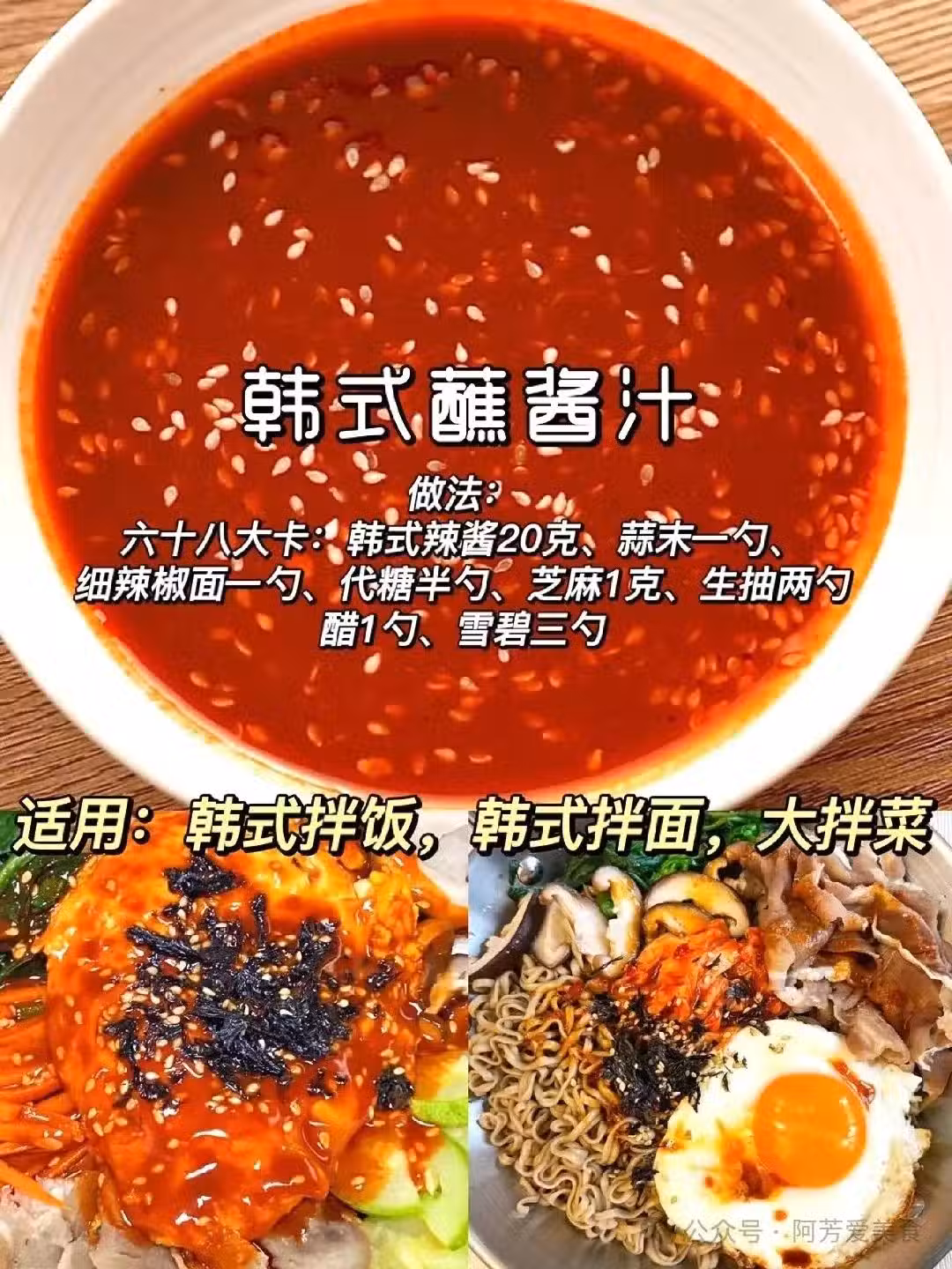 韓式蘸料汁,這款非常的適合做韓式拌飯,美味的醬汁淋在拌飯上,在攪勻後,味道散發開來,吃一口就會愛上的,好多寶子們喜歡吃。