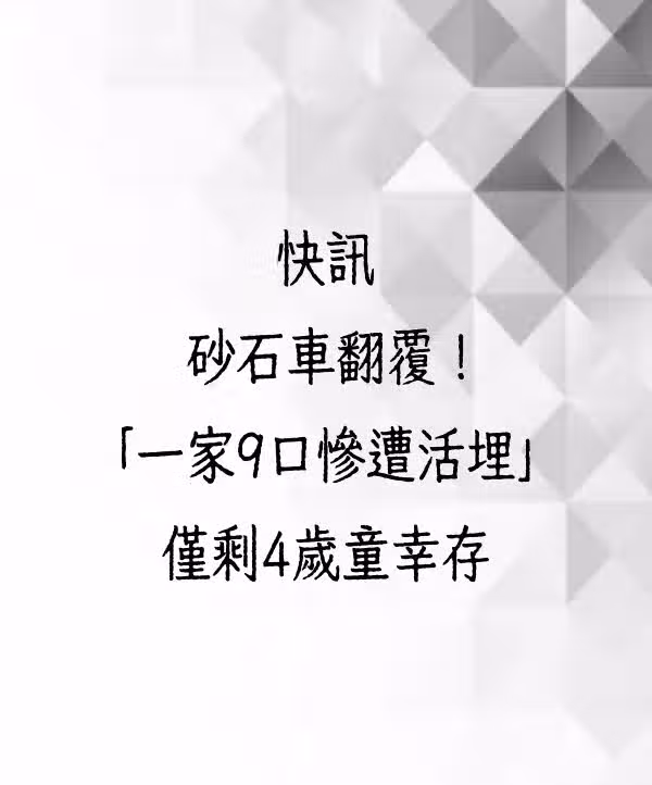 快訊/砂石車翻覆!「一家9口慘遭活埋」僅剩4歲童倖存!