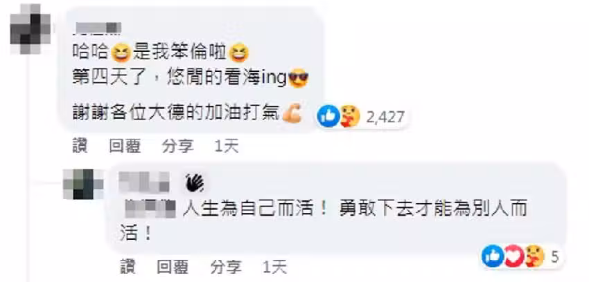 而沒想到這位環島騎士本人竟也在貼文下現身!他用輕鬆口氣表示:「哈哈!是我本人啦!」,並透露被拍攝的當下已是環島第四天,正悠哉地欣賞海邊風光,同時也感謝大家的加油打氣,不少人都被他樂觀的口吻感動,甚至引來2千多人按贊,直說:「雖然我不認識你,但是我替你加油」(圖片來源:chinatimes 、FB@騎車環島趣)