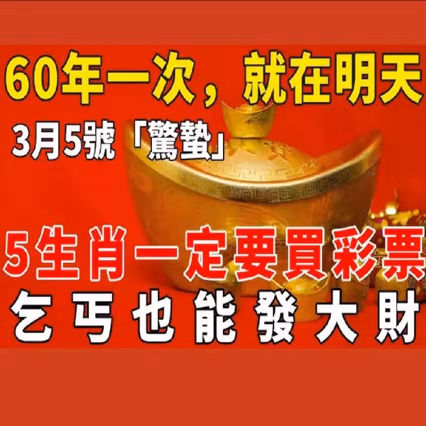 60年一次,就在明天!3月5號「驚蟄」,這5個生肖一定要買彩票,乞丐也能發大財,尤其這個屬相!再窮也能翻身!