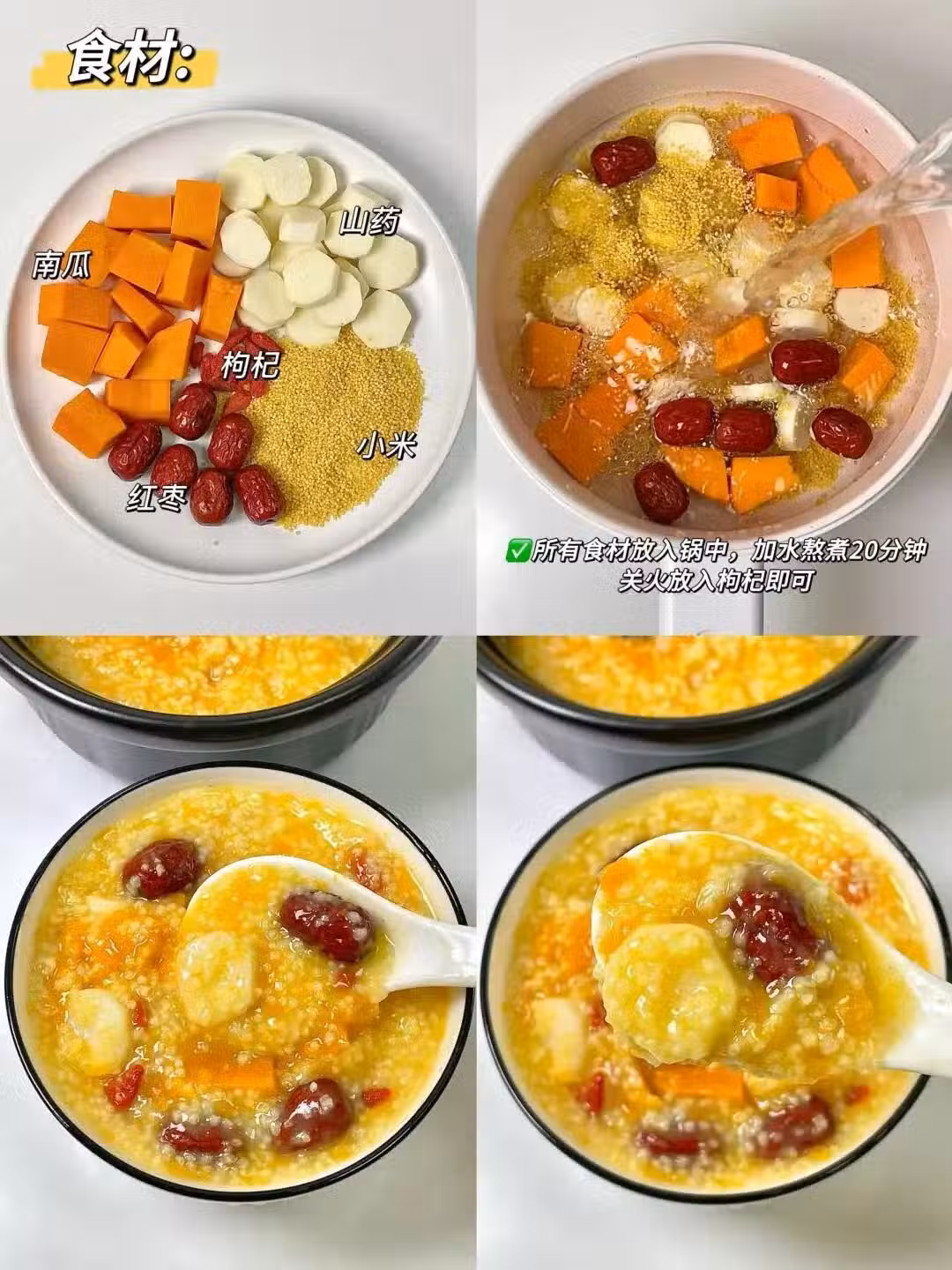 2.洗乾淨電飯鍋,把所有食材都丟進去,加入適量清水,選擇煮粥模式即可