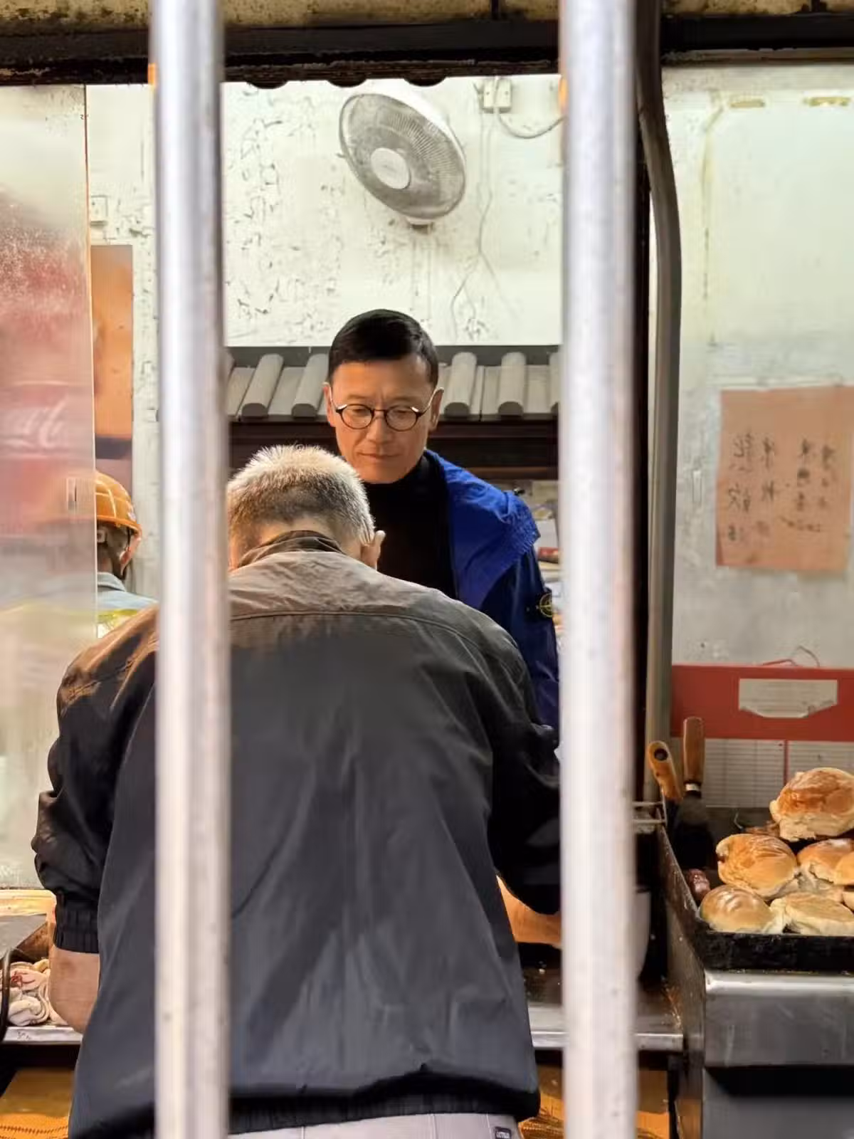 67歲苗僑偉現身街頭,排隊買豬扒包,打扮有型,和老人們愉快聊天