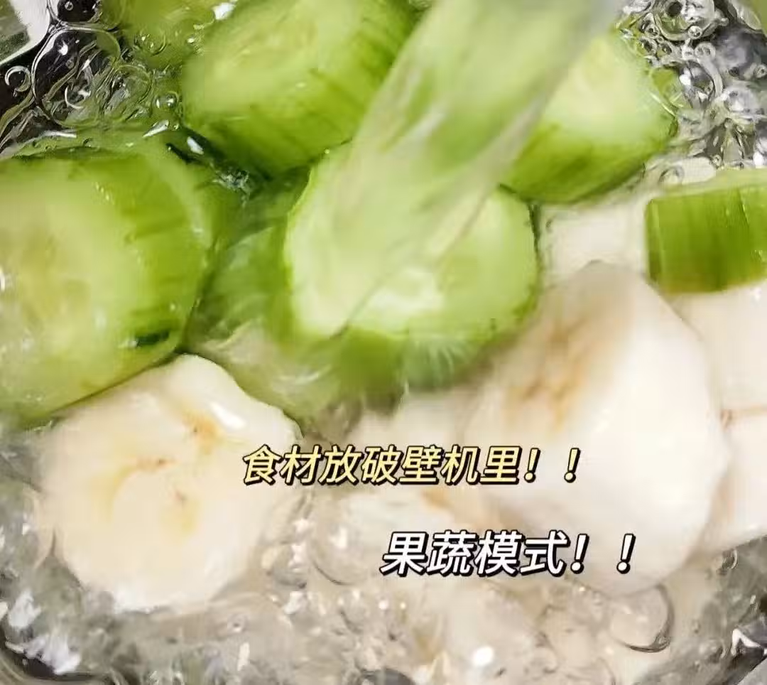 2、把切好的黃瓜和香蕉放進破壁機,加800毫升清水
