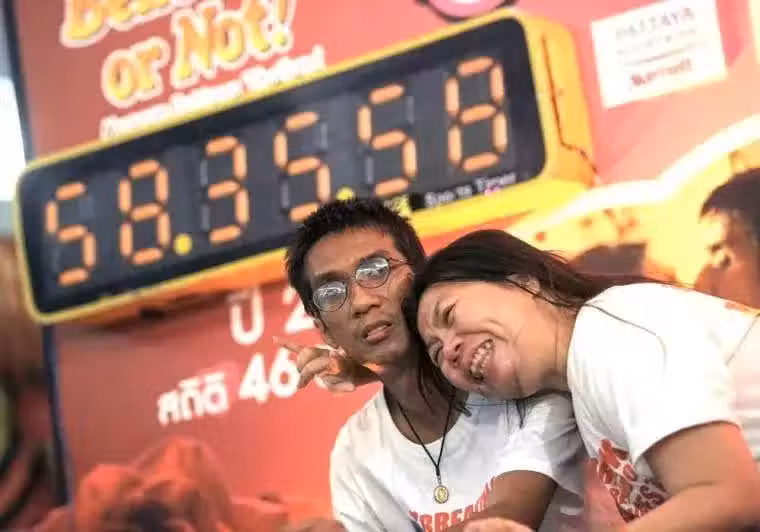 在最後的比拼中,他注意到對手有些昏昏欲睡。「當另一對情侶的嘴唇分開時,我意識到我們贏了。」他說。儘管取得了勝利,艾卡柴後來也承認:「只有瘋子才會去做這樣的事。正常人不會嘗試的。」