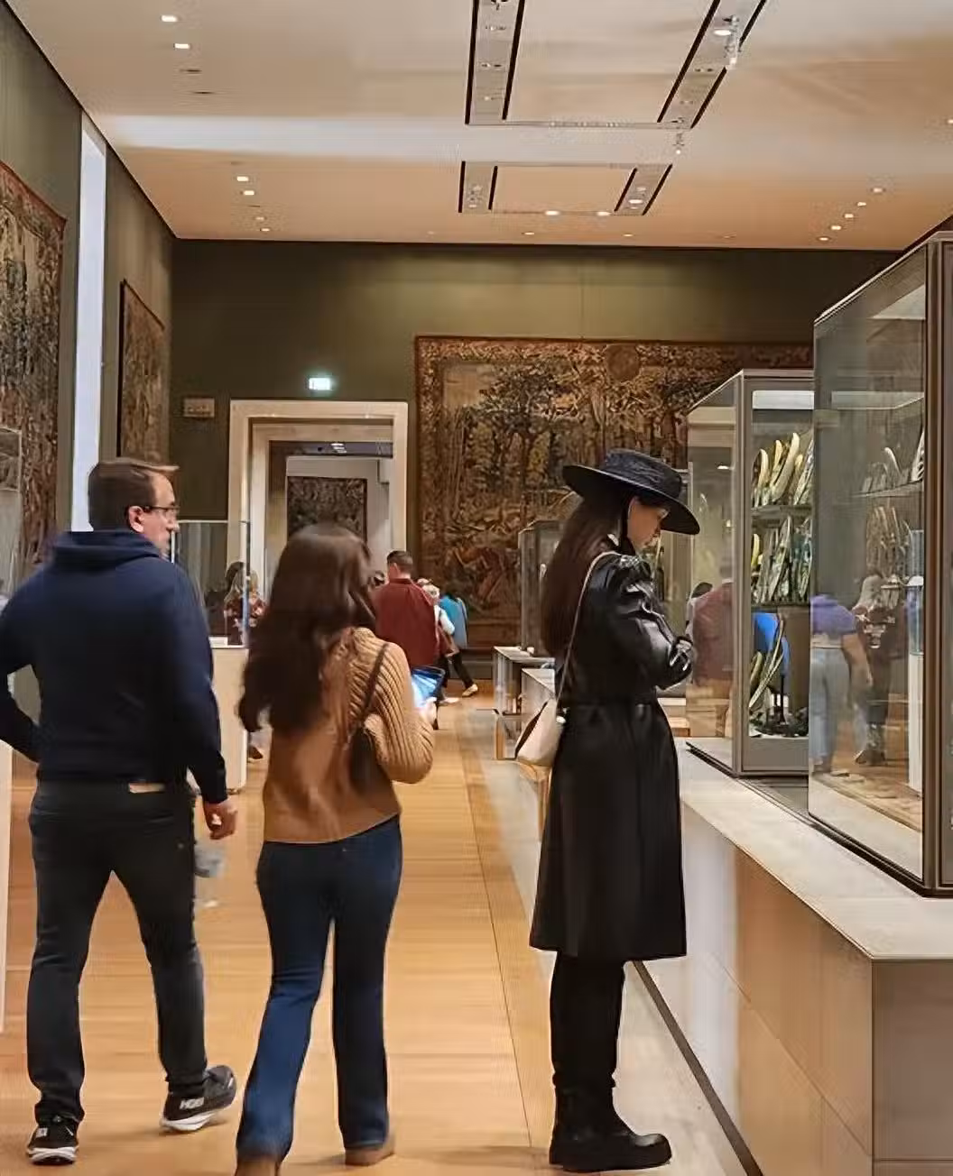 法國羅浮宮偶遇林志玲,穿長款黑皮衣又高又瘦,像模特一樣好漂亮