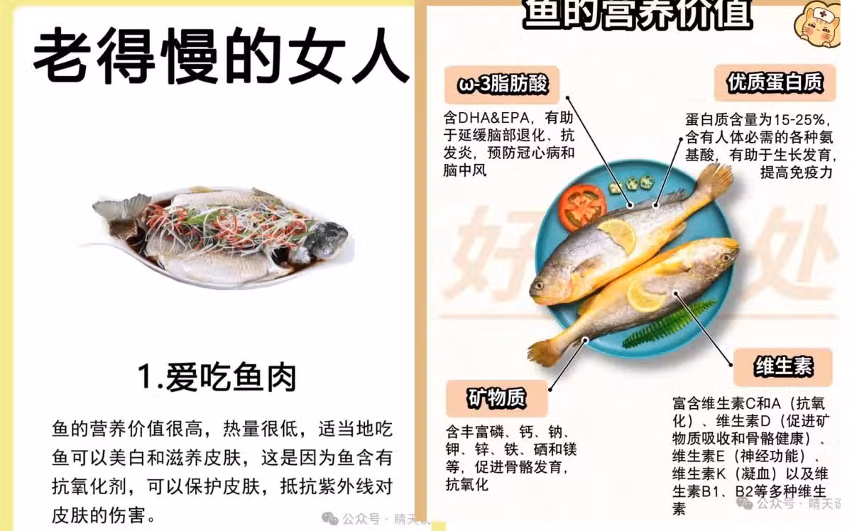 推薦吃法 每周食用 2 - 3 次魚類,如清蒸鱸魚、紅燒鯽魚等。清蒸能最大程度保留魚的營養成分,將魚處理乾淨後,加入蔥姜蒜等調料,上鍋蒸熟即可。既簡單又健康,為身體補充豐富營養。